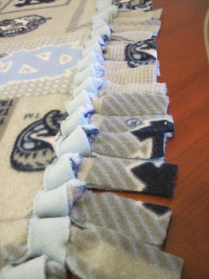 I have wanted to do this for FOREVER, you might remember me blogging about it about a year ago here! I finally got up the nerve to conquer this project over my vacation in August and then had the equally difficult task of saving it until Christmas for my boyfriend. Now that he has it in his possession, I can share the "how to" with you. I found an awesome tutorial here and used it as a guide to help me with my extra large blanket.